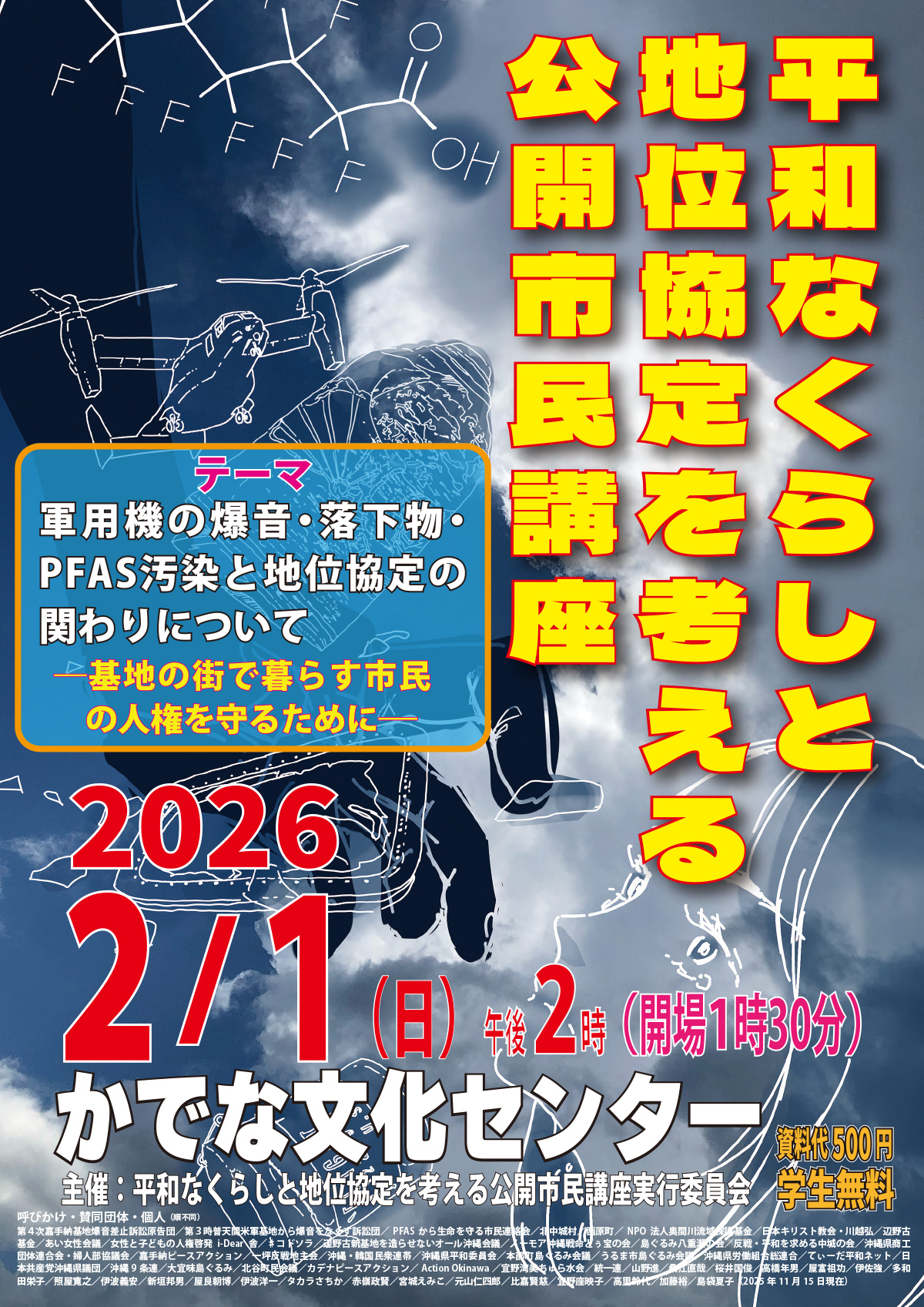 | 主催 | 平和なくらしと地位協定を考える公開市民講座実行委員会 |